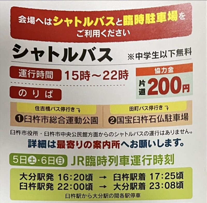 今年の「うすき竹宵」に関する、シャトルバス、イベント情報、竹オブジェのスポットなどの情報ははこちらの記事にまとめています。