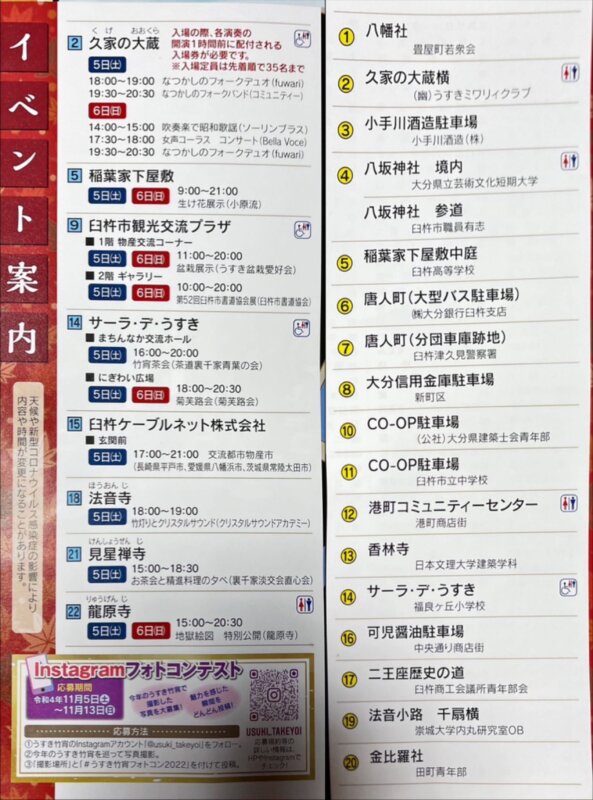 大分県臼杵市の秋は、「うすき竹宵」や紅葉、その他にも楽しい!また美味しい!イベントが開催されます。