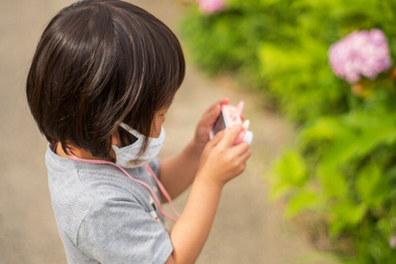 ふだん、こども園でお散歩している娘さんも、カメラを持って今日は父とお散歩