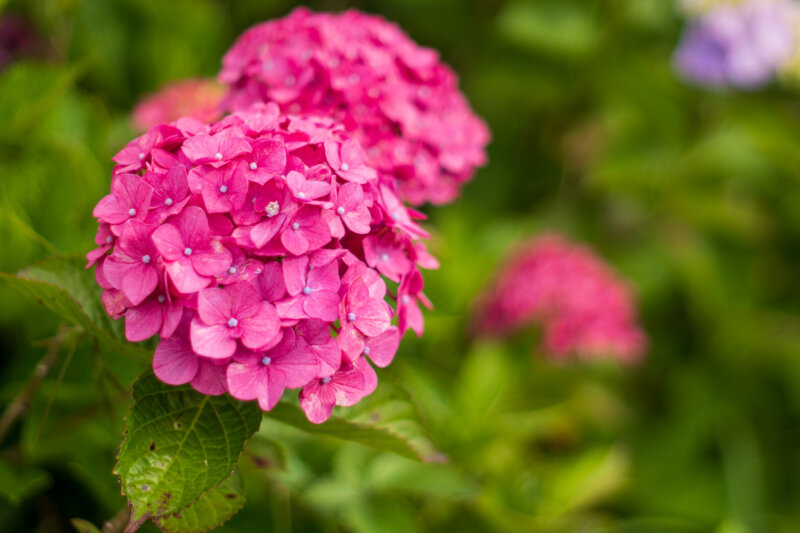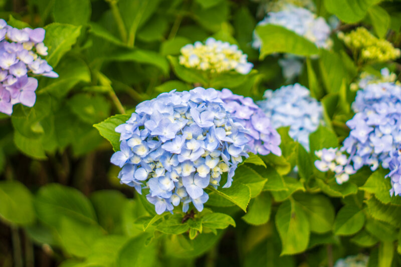 その名の通りあじさいロードには、梅雨時期なるとあじさいの花がたくさん咲きます。