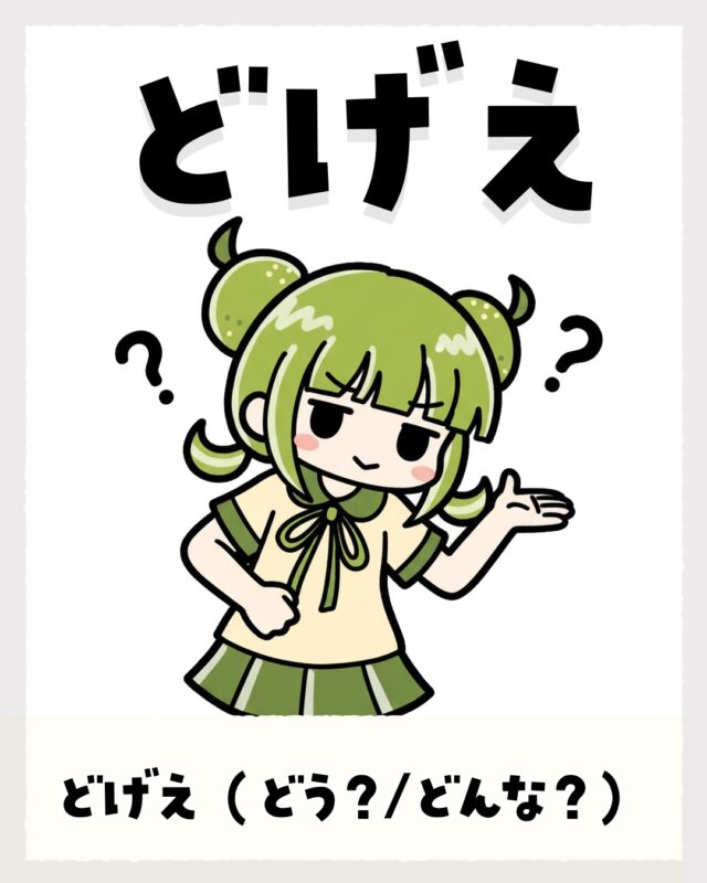 「どげえ(どう?/どんな?)」は県内で意味は共通だが、地域・家庭で形が揺れます。