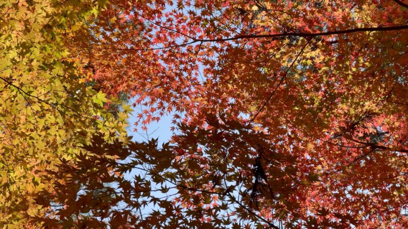 やはり晴れた日に、逆光で見る紅葉はとてもキレイです(動画をみてくださいね)。
