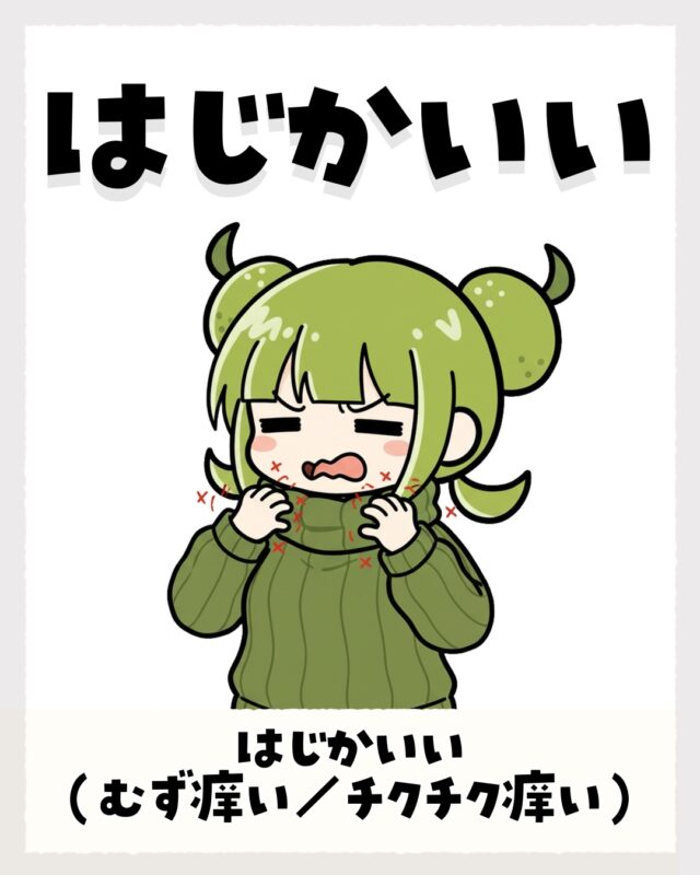 大分弁の「はじかいい」は、ただの「かゆい」より一段イヤ〜な「むず痒い/チクチク痒い」を指す言葉っちゃ。