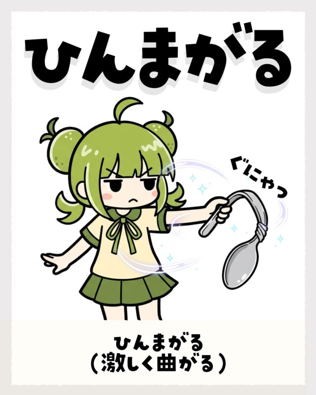 - 「ひんまがる」=激しく曲がる