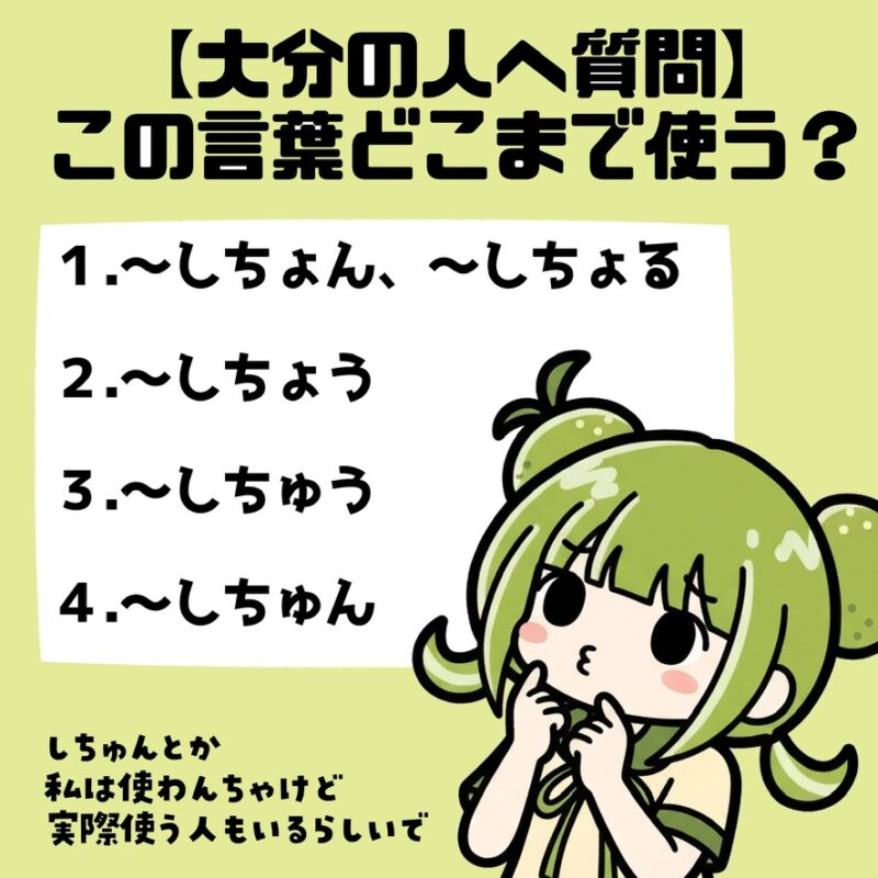 - SNSコメント上は、大分側は「ほたっちょく」頻度高め&「ほたくりかえす/かやす」など地域差が見えた。