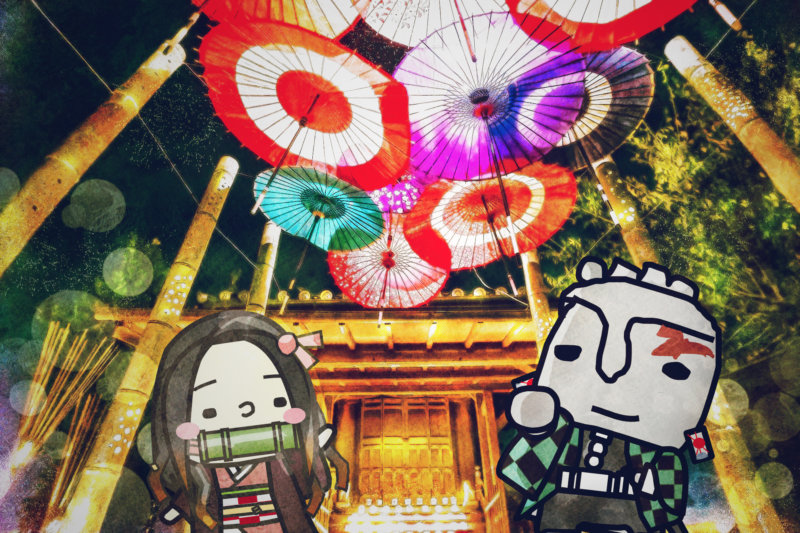 【うすき竹宵×ほっとさん×鬼滅?】畳屋町の和傘と竹ぼんぼり