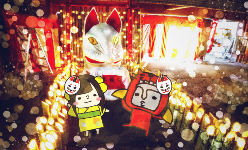 このお稲荷さま、はじめてみるとビックリします口を開けて冷や汗をかいた笑顔