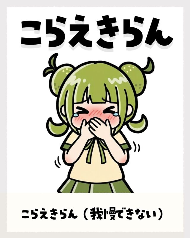 ニュアンスの違いもおもしろくて、「こらえきらん」は“能力的にもう無理”“最初から耐えきらん”感じ、「こらえきれん」は“途中までは耐えたけど限界が来た”感じが少し強いっちゃ。笑いを我慢できん時にも、腹が立って言い返してしまう時にも使えるけど、どちらも感情が外に漏れそうな場面によう合う。