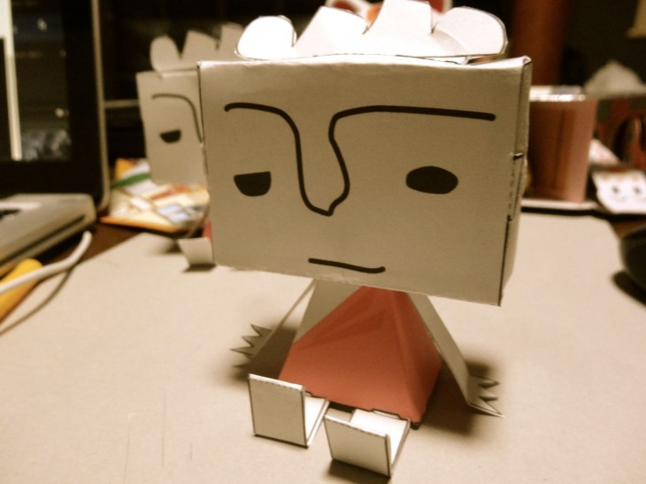 今回、臼杵市の観光PRキャラクター、「ほっとさん」のペーパークラフトを作ってみました。こんなかんじになりました。頭が四角い「グラフィグ」というやつです。