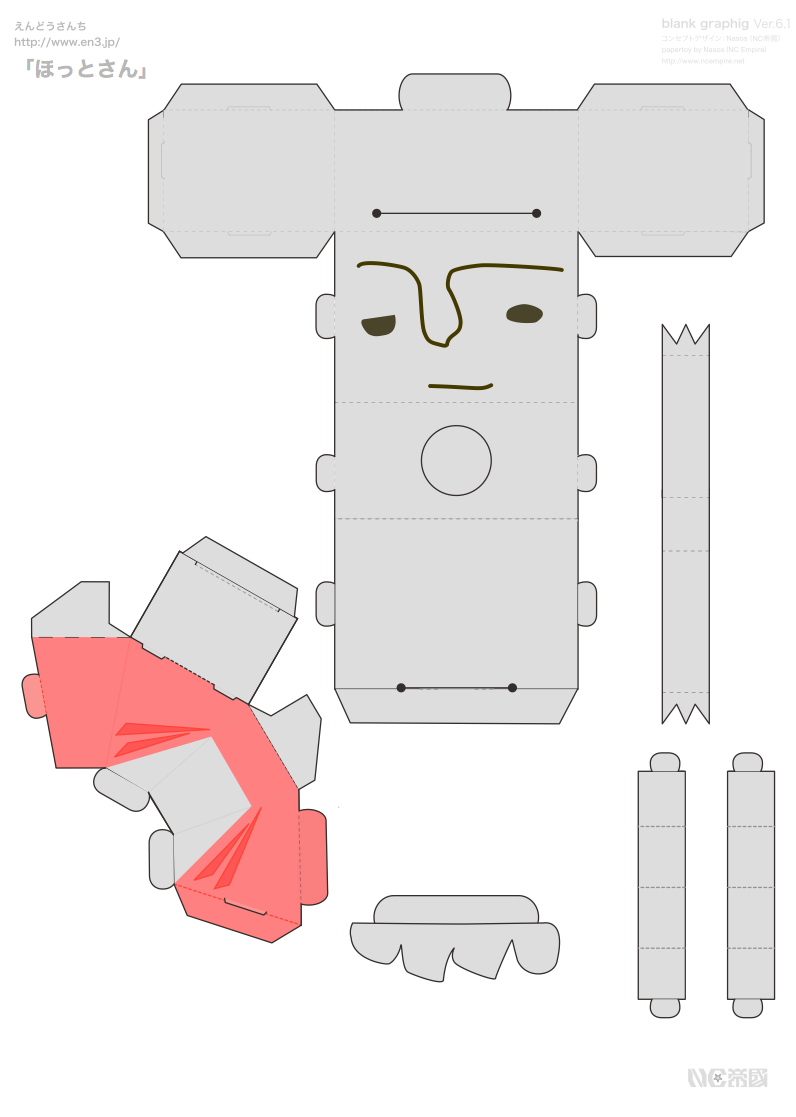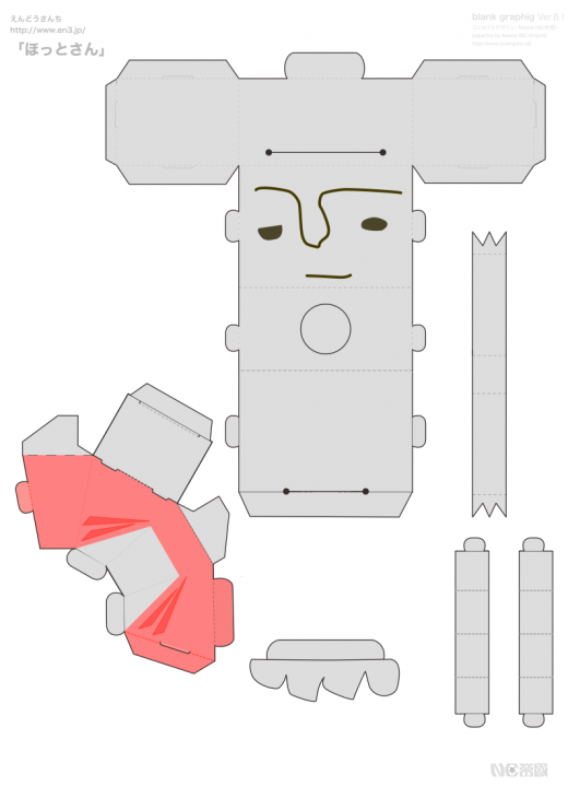 「ほっとさん」のペーパークラフトは、PDFをダンロードして、プリンタで印刷して組み立ててください。(無料:ただし商用不可)プリンタで印刷位した後は、せっせ、せっせと工作が必要です。