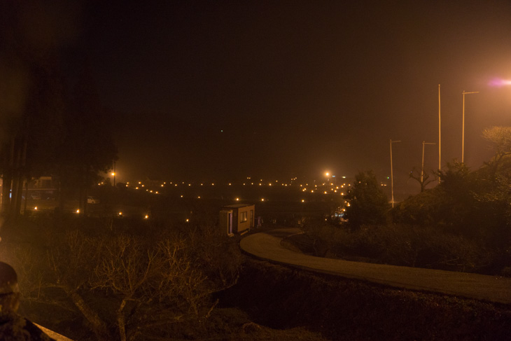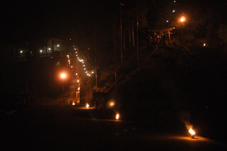 参道が、松明・篝火に照らされています。