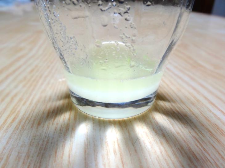 ぎゅーっと絞ってコップに入れます(絞り方はご自由に)。