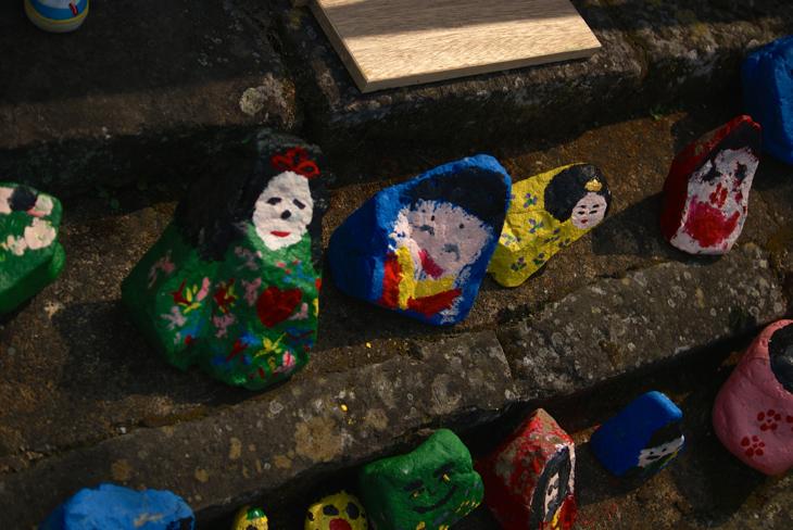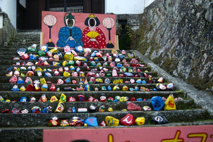 石に絵を描いて、ひな壇にみたてた階段に飾っています。