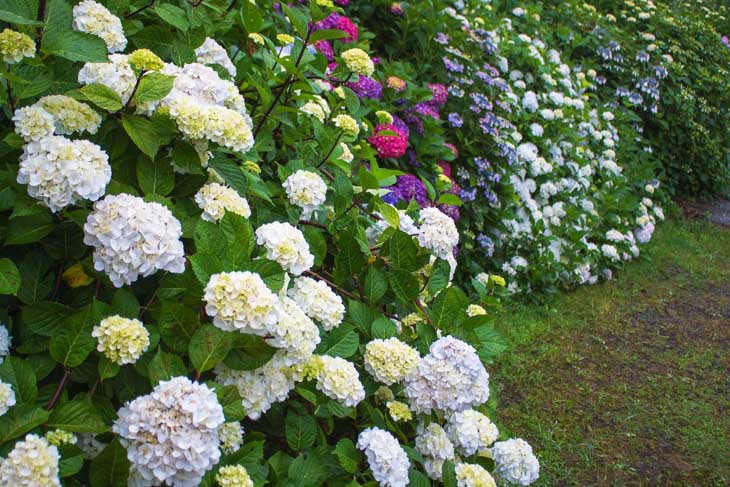 それは、お寺のなかに、たくさんの色とりどりの紫陽花がさく