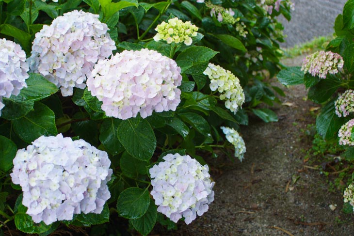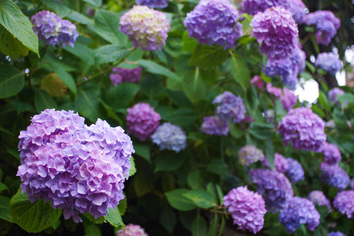 たくさんの紫陽花があるので、雨の日は少し濡れてしまいますが、色とりどりの紫陽花がとてもキレイに咲いていました。