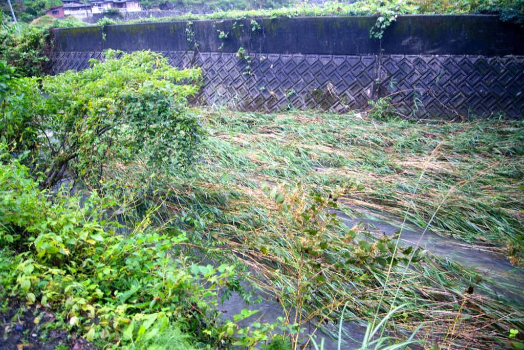 台風の後の川、荒れています。台風のときは水かさが上がります。ただ、年々、河川の拡張工事もしているので、大きくあふれることが少なくなってきています。今年はどうかな?