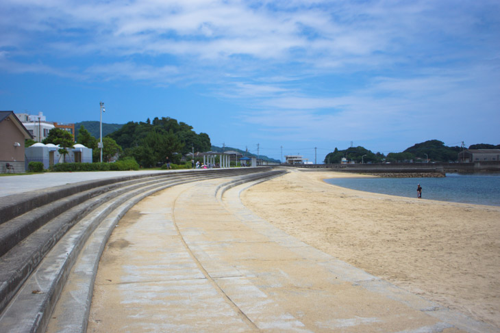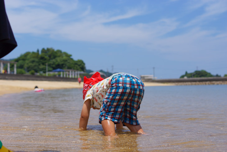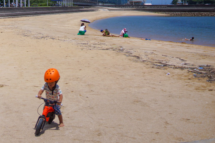 危険な場所はあまりないのと、見通しは良い海水浴場です。去年は8月ぐらいになるとかなり混んでいたように思えます。