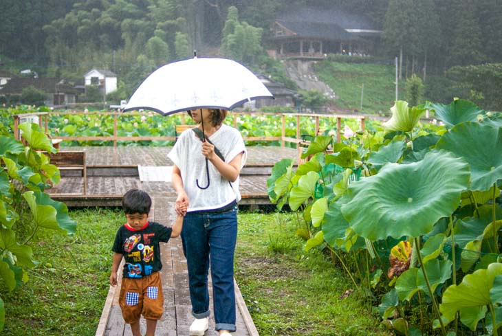 コンサートなどは早朝6時ぐらいから「蓮畑」のなかの広場にて開催されるので、蓮の花と朝日に囲まれて、清々しい気分でイベントを楽しむことができます。