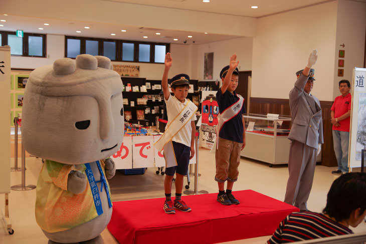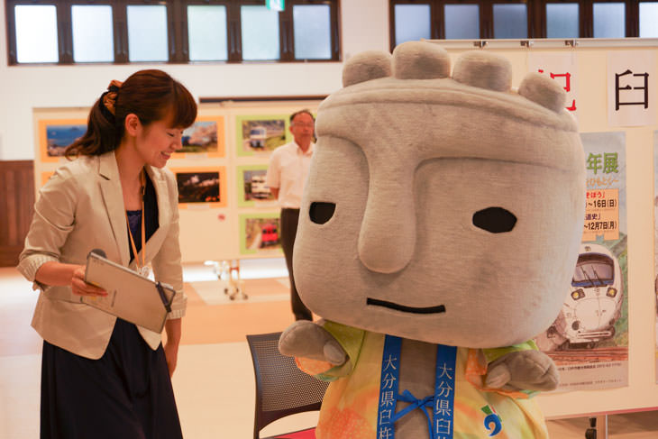 日豊本線、臼杵駅・下ノ江駅開業100記念イベント「臼杵と鉄道の100年展」で、臼杵のゆるキャラ「ほっとさん」が登場しました。イベントについては以下のレポートを御覧ください。