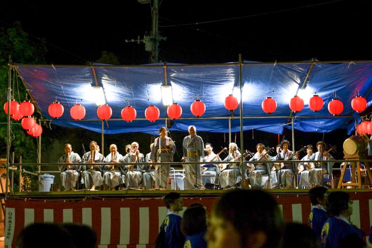 ヤグラが用意されており、歌や太鼓などの演奏もここでおこなわれていました。