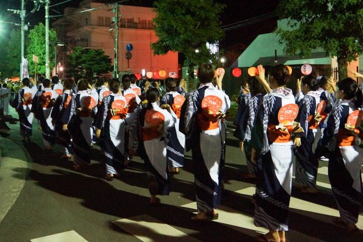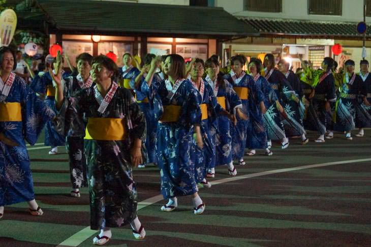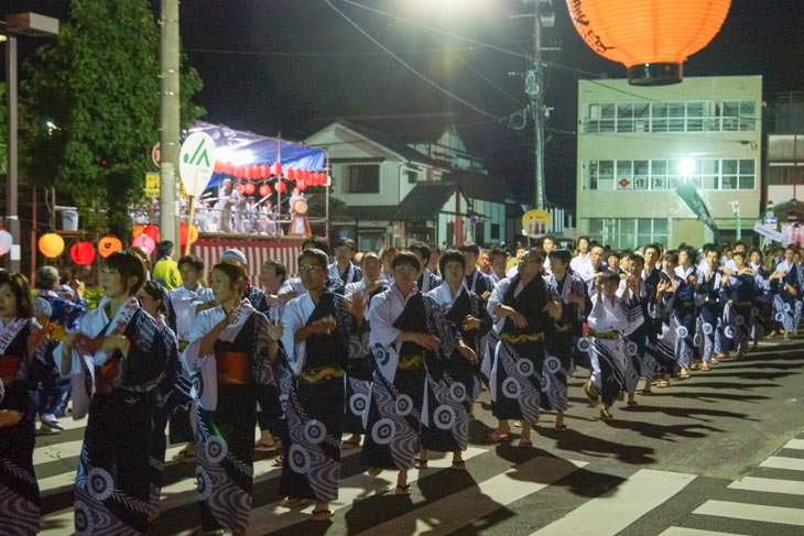 辻ロータリーを各グループが整列して、盆踊りをしながらゆーっくり周っていきます。それにしても、市役所や企業、団体など踊る人がたくさんいます。