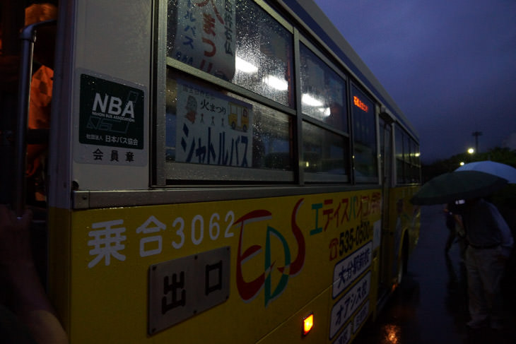 今回は本当にコレでしたね。雨の日に行くって、家族持ちなどにとって本当に勇気がいることです。着替えだっているし準備が必要。観光客、ツアー客があらかじめ決まっているので運営側の都合というのもわからないではないのですが、せめて定期的な「現地の写真」ぐらい欲しかったかなーと思います。来年は私も雨でも積極的に動いてみようかなぁ。(火まつりの風景の写真はこちらからご覧ください)