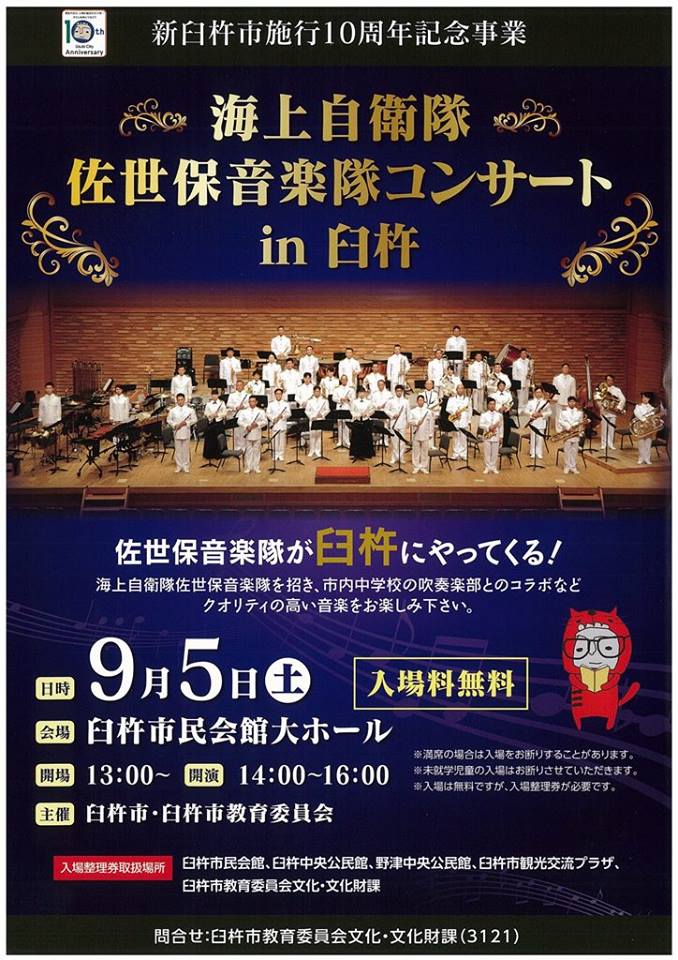 9/5(土)は新臼杵市施行10周年記念事業として、海上自衛隊「佐世保音楽隊コンサート」in 臼杵 が開催されました。入場は無料だったので今回はたくさんの方々が臼杵市民会館に訪れていました。なんと、市の事業で臼杵市民会館が満席になるくらい上から下までずらっと埋まっていました。・・・こんなのはじめて?