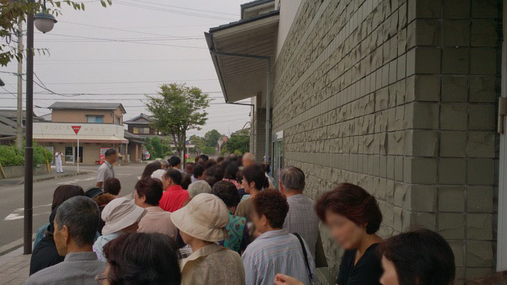 いつものことですが、本当に臼杵市の方々は並ぶのが早く開演13:00からですが、12:00ぐらいからもう並んでいたようです。文化系の娯楽が少なくめずらしいので、当然といえば当然なのかもしれませんね。あと・・・無料。