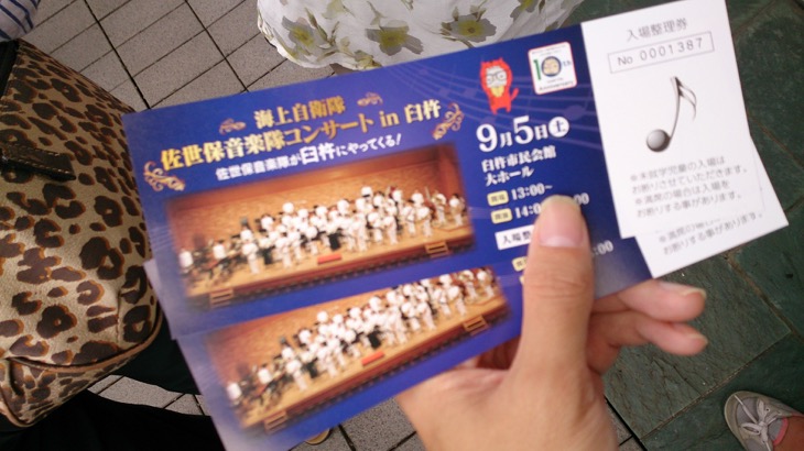 今回の整理券。これがないと入れないということで1400枚はあり市内各所で配布されていたのですが、ほとんどなくなっているそうです。入場の際は、荷物検査も有りました。海上自衛隊だから安全のためなんでしょうね、きっと。