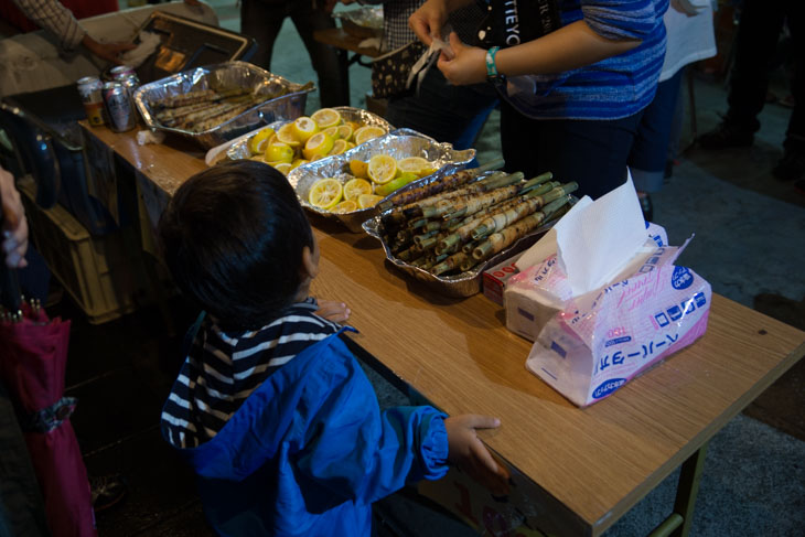 「うすき竹宵」に行く目的は、「キレイな竹ぼんぼりを見たい」とか「キレイなお姫様を見たい」とか色々あれど、うちの子の目的は「たち巻き」を食べる…でした(あながちホントの話)。