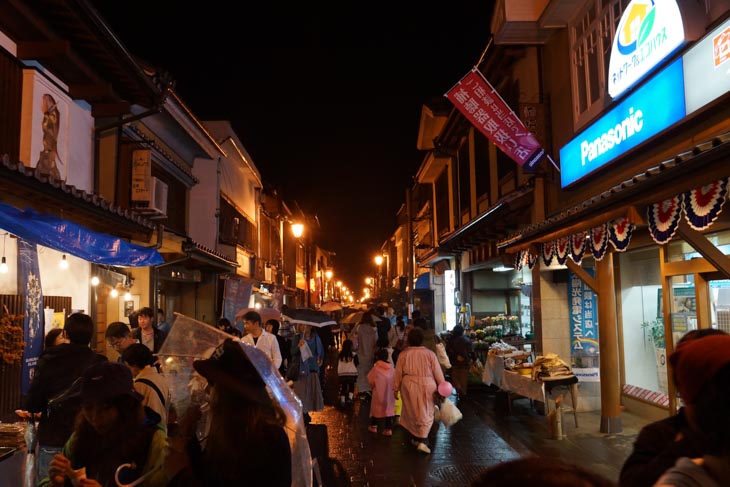 うすき竹宵の日、八町大路にはたくさんのひとであふれていました。
