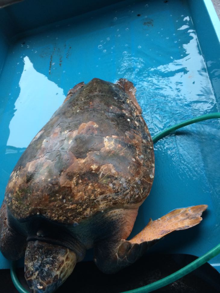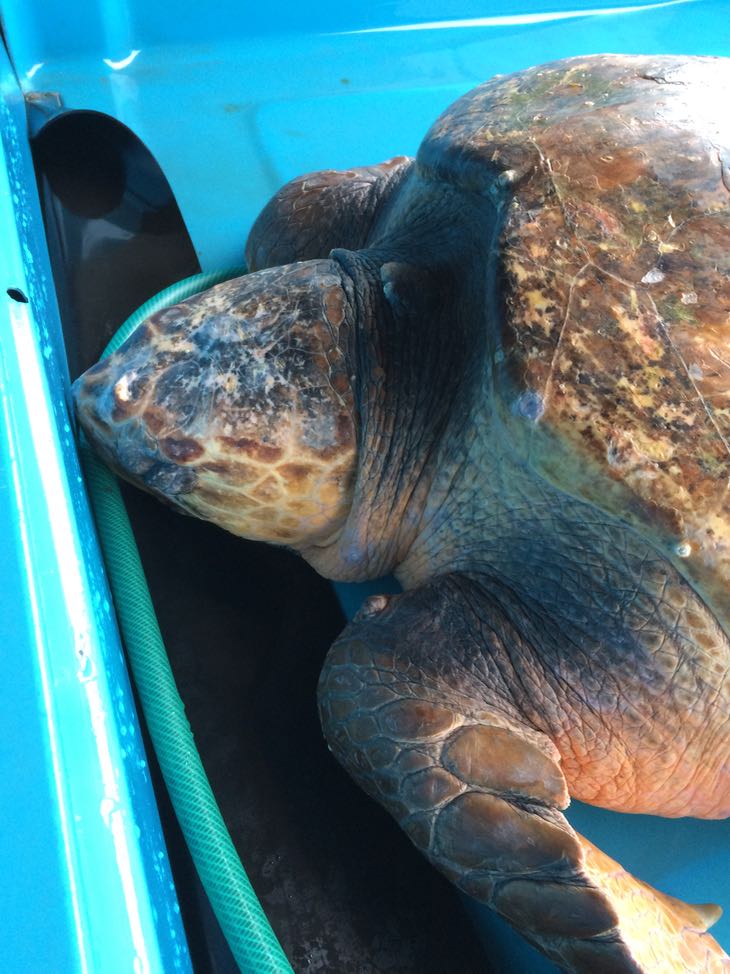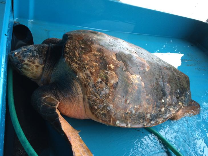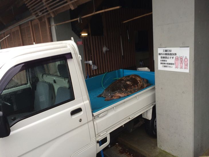 許可を得た後、「トラックの後ろに載ってるよ」って教えてもらったのでウミガメと分かりました(笑)。