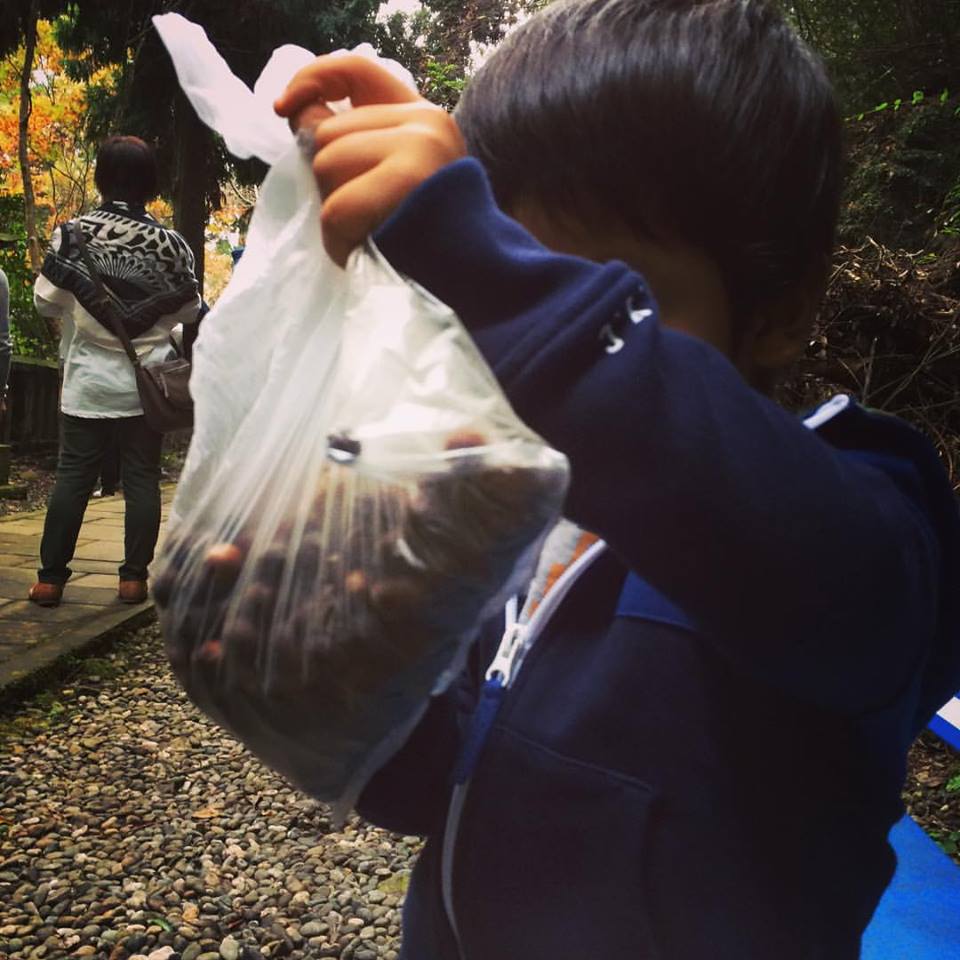 4歳になったばかりのうちの子供は、今回「赤い葉っぱ」が目的ではなく、どんぐり拾いがメインテーマでした。