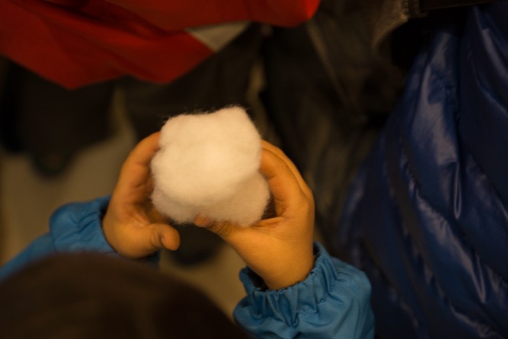点灯イベントでは、最初、綿を子どもの手でこねこねして丸めて「雪だるま」を作ったりしました。うちの子も作っていましたが…本当は最後に「ほっとさん」の顔がつくはずだったのですが・・・品切れでした。しょうがないけど残念。でもそれだけ、人が、子どもがたくさん集まっていました!