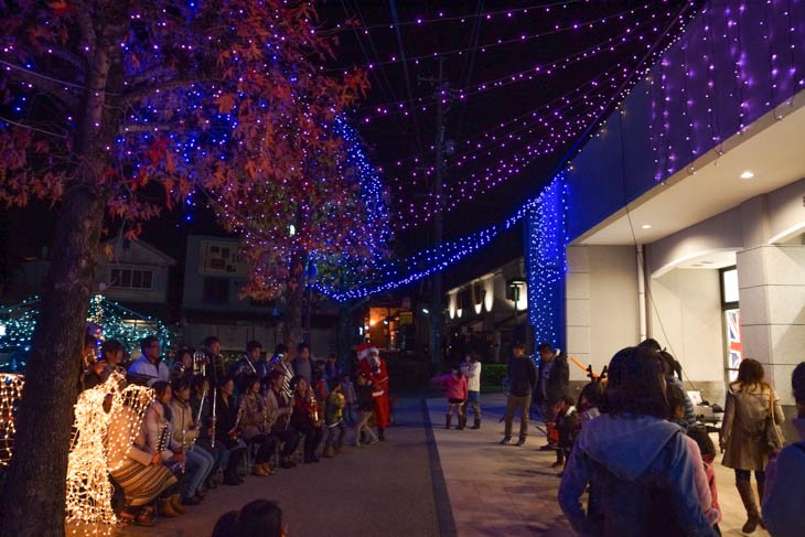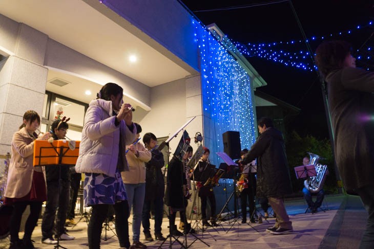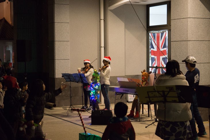 その後は外に出てイルミネーションの点灯カウントダウンとともに演奏がありました。カウントダウンは、子どもたちでじゃんけんをして勝った人がスイッチを入れるようでした。