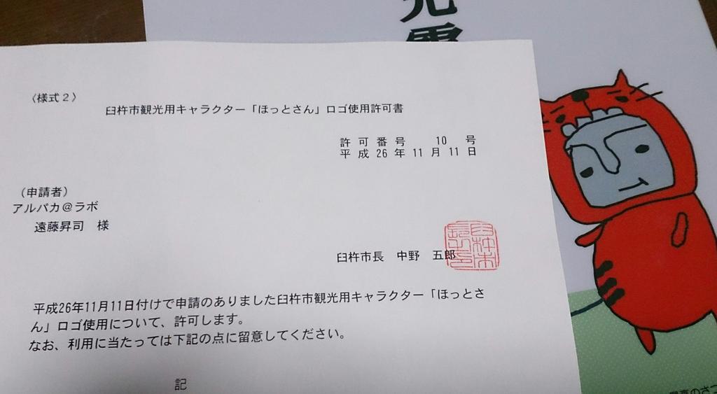 商用利用でなければ申請無しでふつうに使っていいそうですが、一応ホームページで扱う上で何かあると悪いので許可をとっています。利用目的は「臼杵市の情報を発信するため、キャラクターとして使う」ということ。