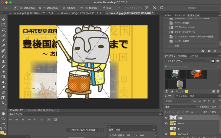 ということで、そのまま「ほっとさん」は貼り付けることができないので、Adobe Photoshopを使って作成をしています。