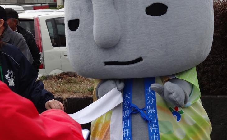 今回は主催に大分合同新聞さんが居ますので、そのゆるキャラ「ぶんぶん」も早くから待っていました。