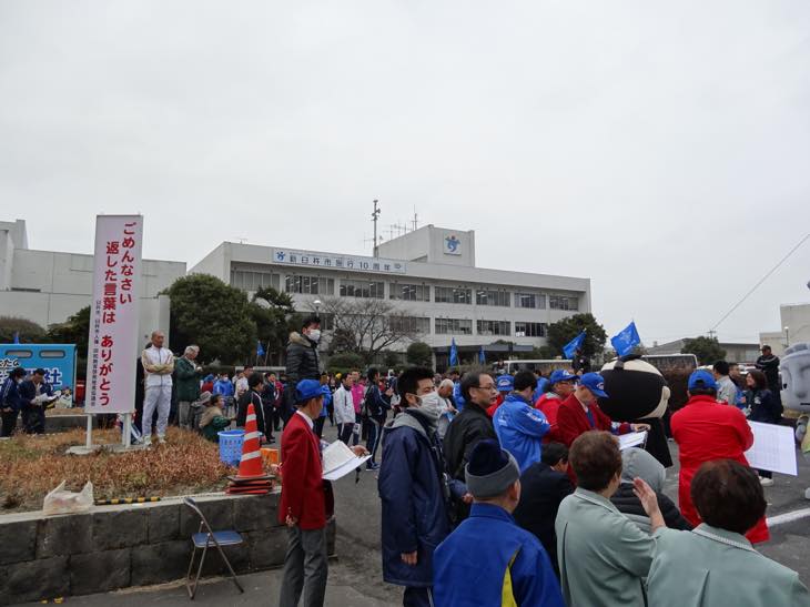 選手たちがもうすぐ臼杵市役所に到着する時間になってくると、職員、選手側スタッフの方や、学生さんなど応援する人たちがいっぱい集まってきました。