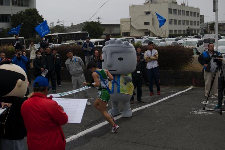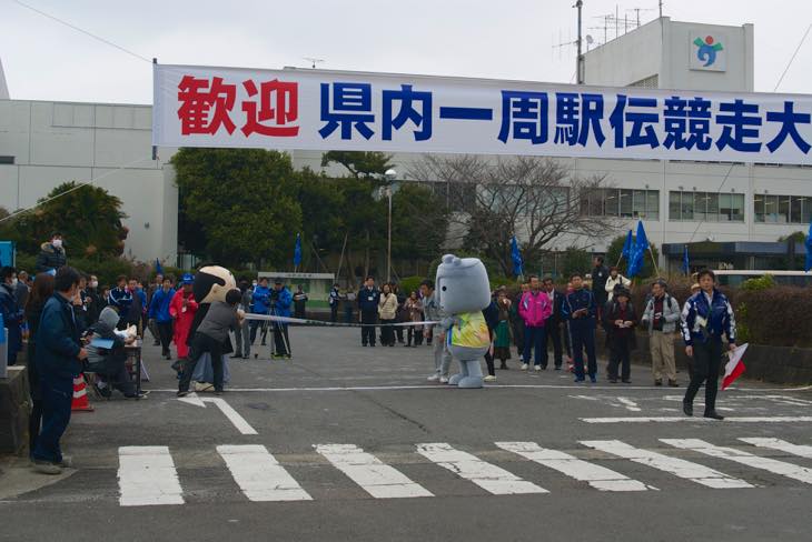 駅伝大会のゴールでお出迎えです。