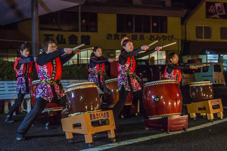 臼杵石仏や参道は、松明や篝火に照らされて、幻想的な風景をみることができました。別の記事で写真を紹介していますのでこちらの記事をごらんください。