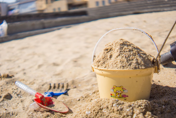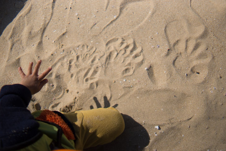 2月…果たして寒くないのか?…という心配も少しあったのですが、冷たい風が少し吹いていた程度で日差しが強かったので、あまり問題ではありませんでした(嫁はちょっと寒がっていたかも)。子どもは全身を砂まみれにして、元気に「砂遊び」です!