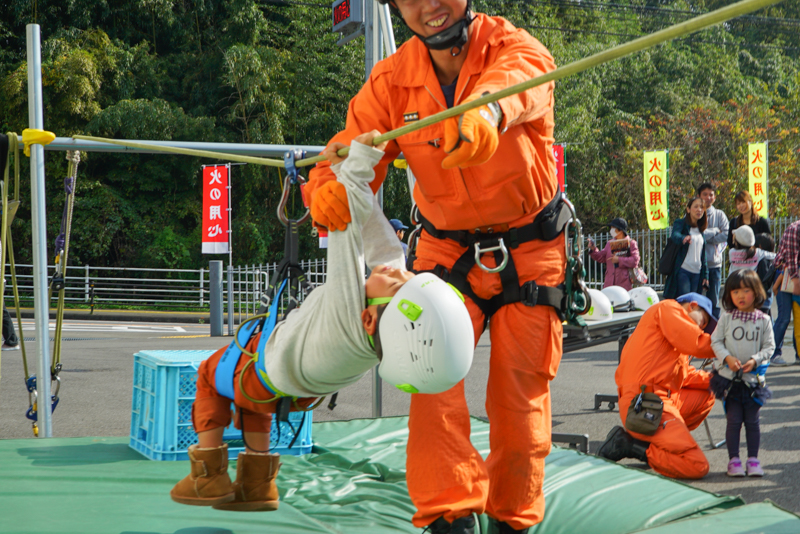 「綱渡り」「消火」などの体験、また消防車や救急車にも乗ることができます。
