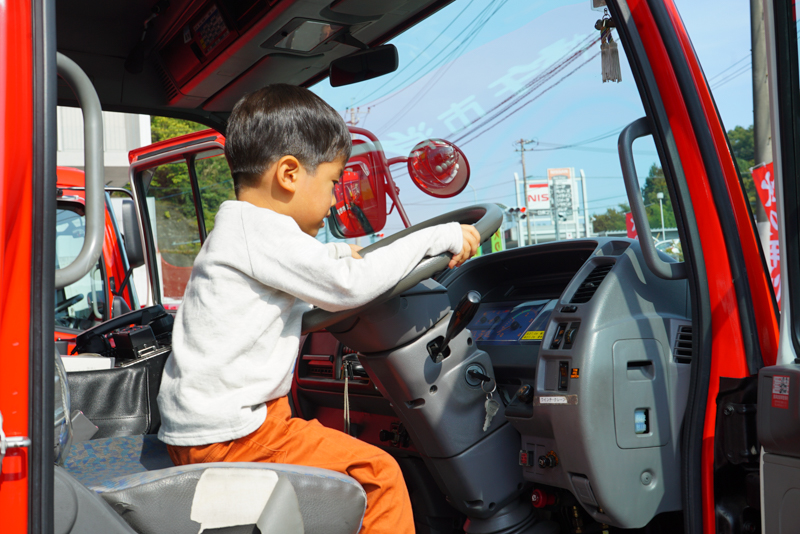 消防署でのイベントなので、会場の広さなど関係ないから、この消防車に乗れたんでしょうね。