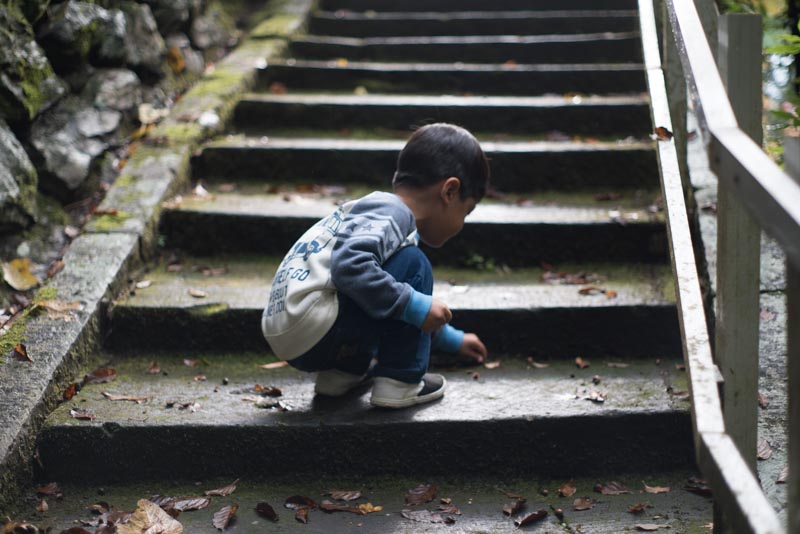 どんぐりを拾いながら、息子さんも上の方まで登ることができました。