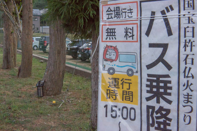 臼杵石仏火まつりでは、駐車場から臼杵石仏への有料のシャトルバスが毎年用意されています。