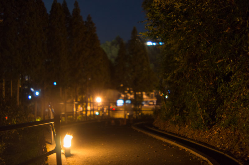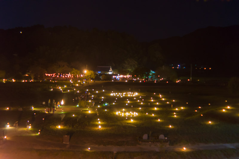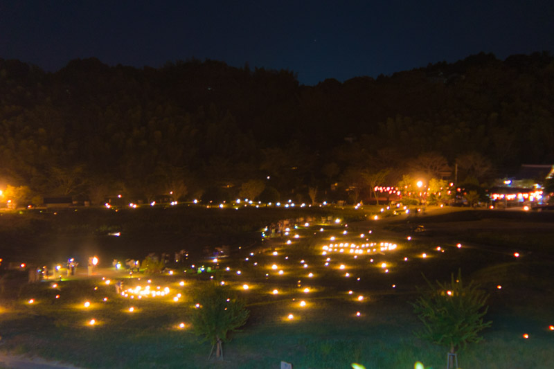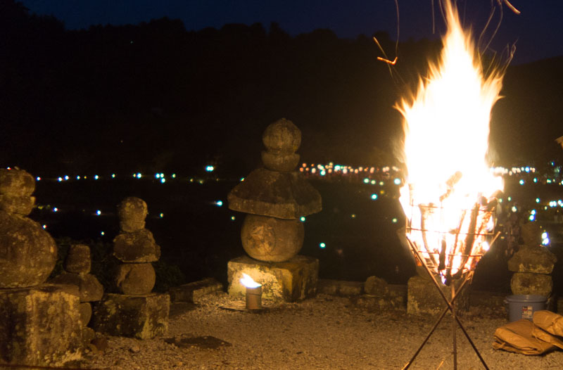 石仏の下にある公園、石仏公園にもたくさんの松明・篝火が灯されています。