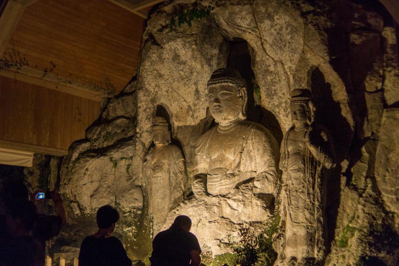 今年、古園石仏群の建物は新しくなったので、電気の灯りもついて明るいくらい。