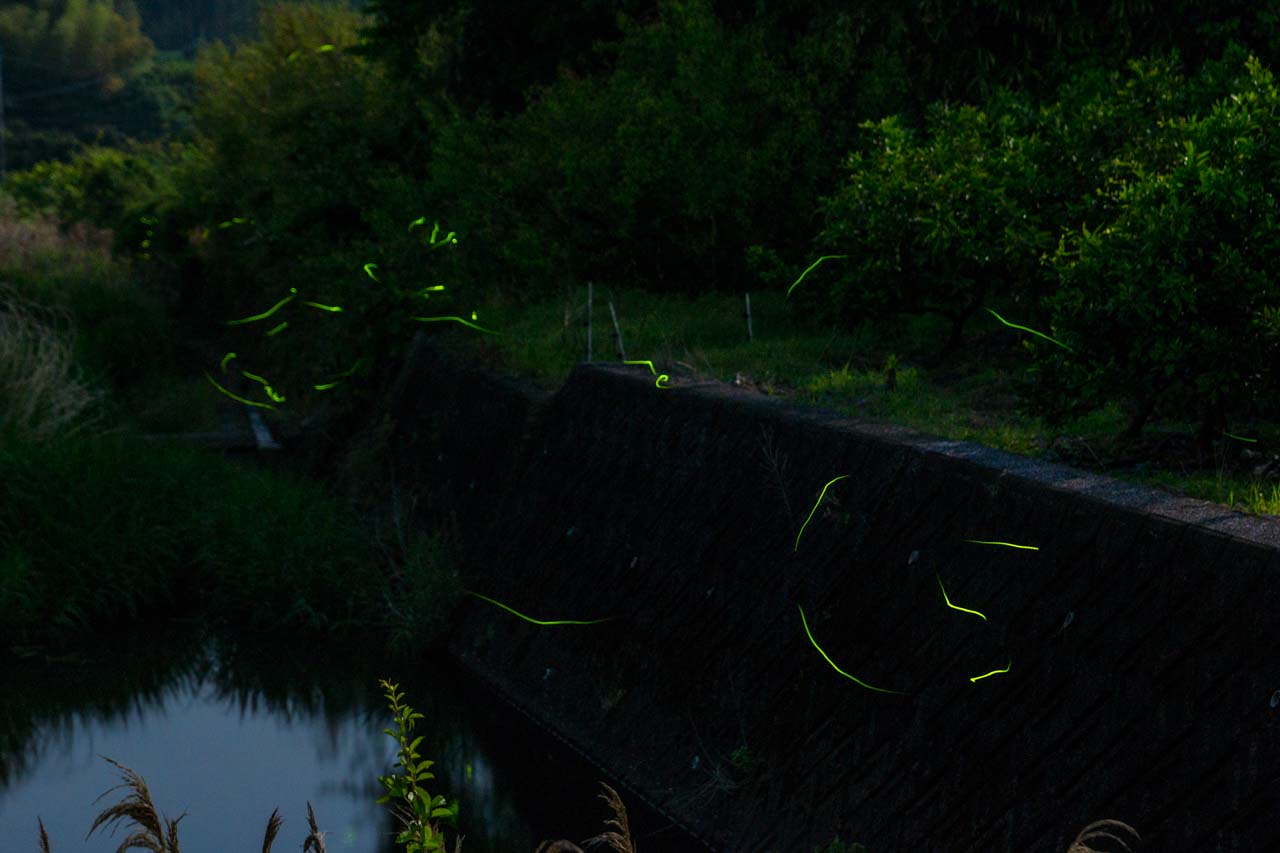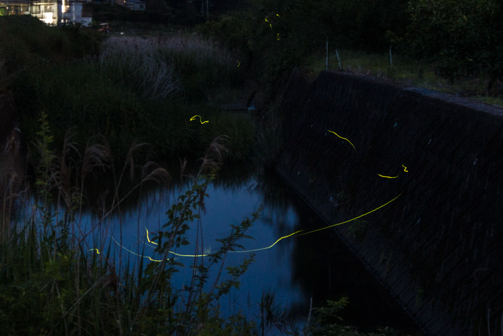 光を時間をかけて入れつつ、ホタルの軌跡を撮影ないとなかなかうつりません。