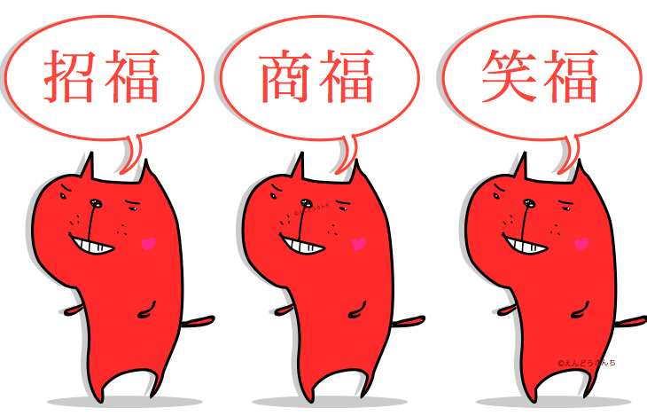 「福を招く【招福】・商売繁昌の【商福】・笑う門には福来たる【笑福】三つの福をもたらす」